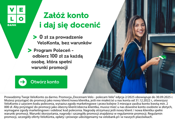 - 0 zł za prowadzenie VeloKonta, bez warunków